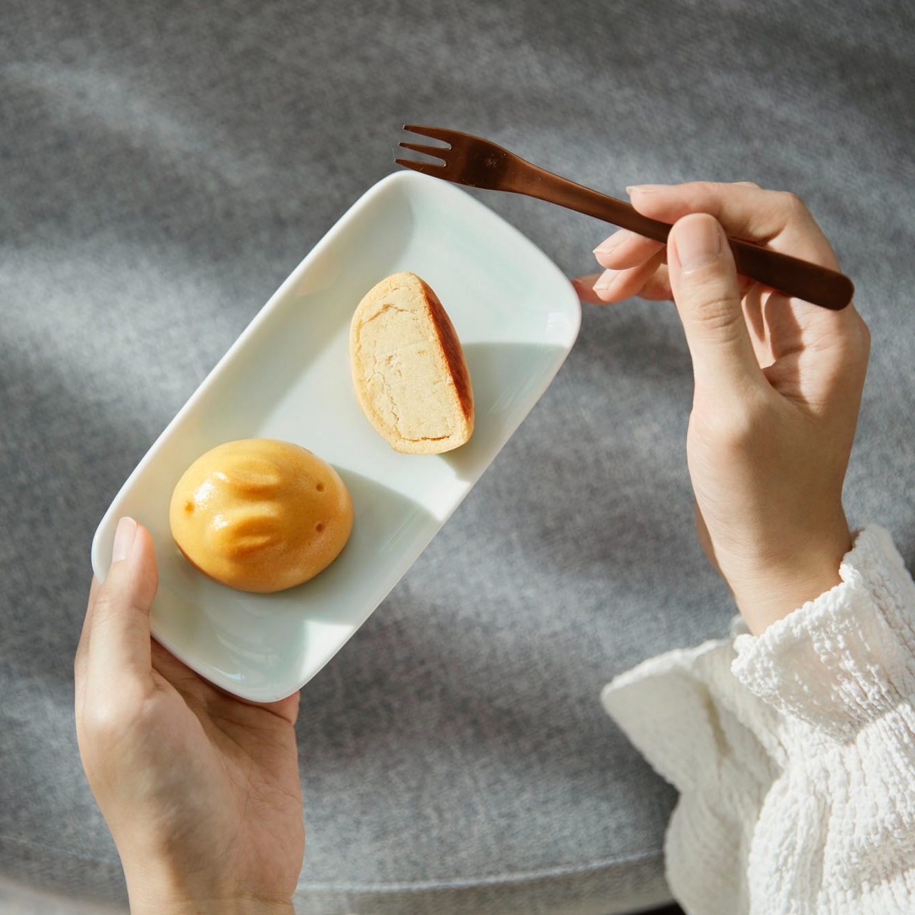 If you cut through the fluff, these are almost traditional mooncakes save for the fact that in place of lotus seed paste, Sunday Folks have used shiro-an as the filling. Calling white bean paste by its Japanese name, shiro-an, is also quite genius, ’cos it sounds so much more… premium, right?