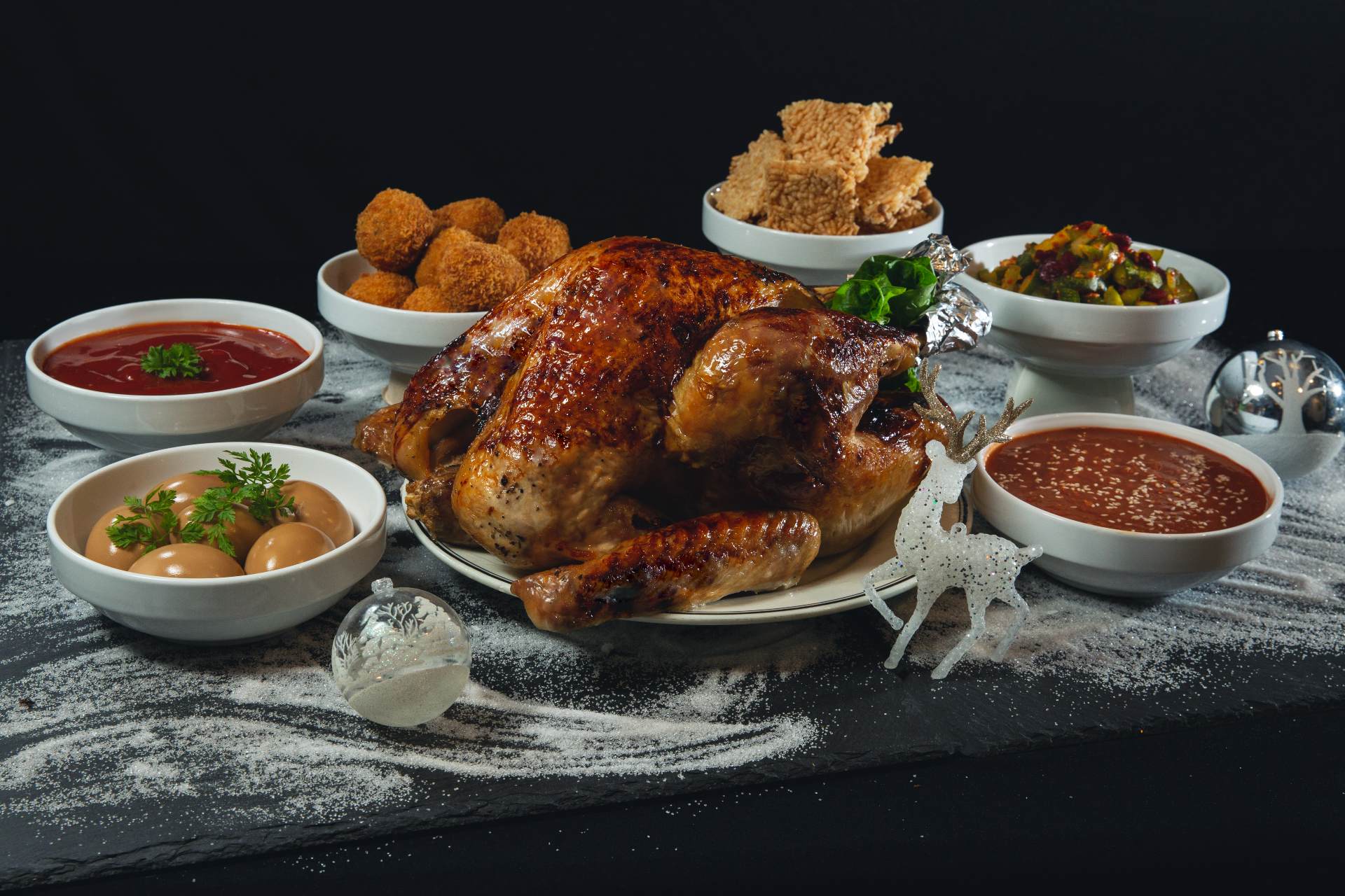 How to add a luxurious touch to your turkey? Give it a rub down with truffle butter and you’re on your way to a special bird. That’s what Sofitel Singapore City Centre has done: marinate the turkey ($192, 4kg to 5kg) in a tasty blend of spices and truffle-infused butter. If you prefer familiar flavours that children can better appreciate, look to the Japanese-style Soy-Glazed Turkey ($192, 4kg to 5kg) made with a marinade of soy sauce, sugar, sake and mirin.