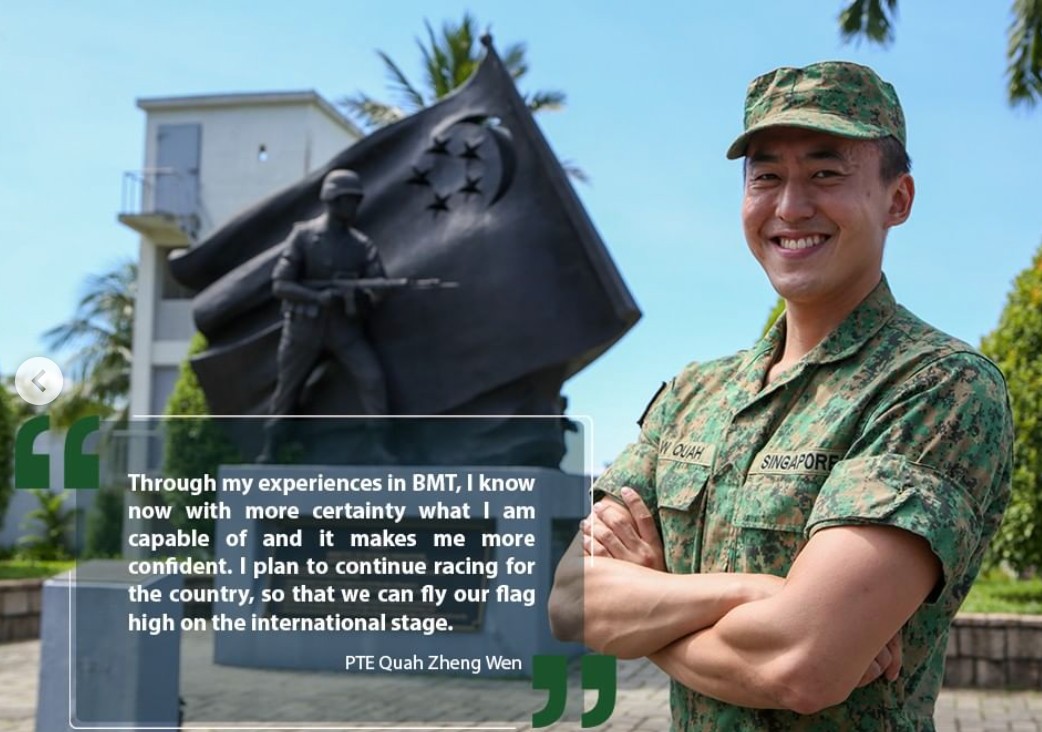 In an Instagram post by @oursingaporearmy, Zheng Wen elaborated on his personal growth over the course of his BMT: "Through my experiences in BMT, I know now with more certainty what I am capable of and it makes me more confident. I plan to continue racing for the country, so that we can fly our flag high on the intertational stage."