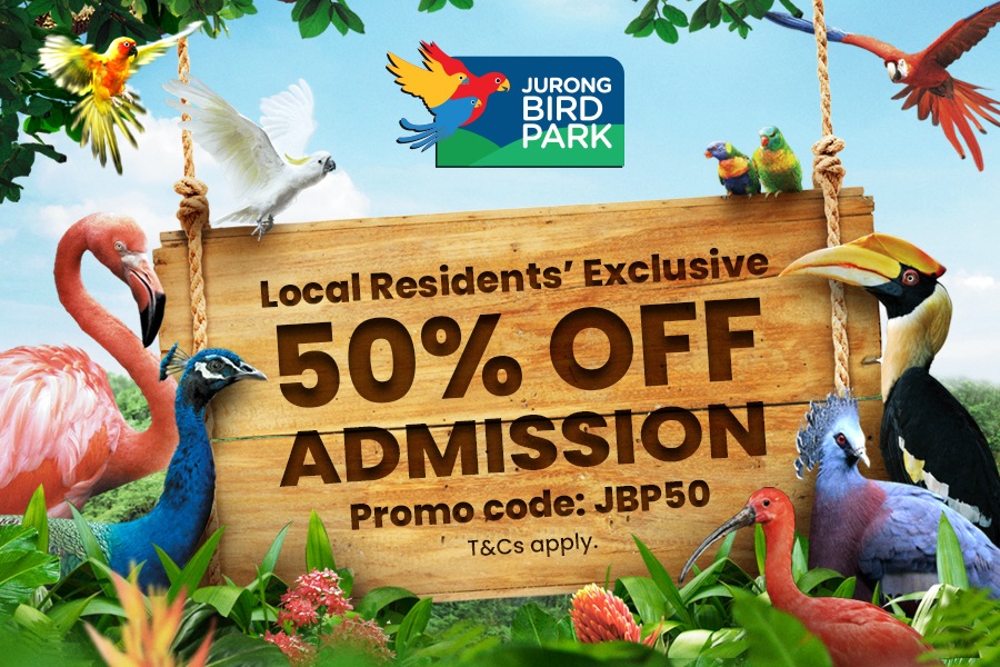 Take the kids to visit our feathered friends at Jurong Bird Park this June holidays. From now till 26 June, local residents enjoy 50% off Jurong Bird Park admission tickets. Simply register for a free WildPass and use the promo code <JBP50> when booking your tickets. Promotion is valid for adult, child and senior citizen tickets, limited to 4 tickets per transaction.